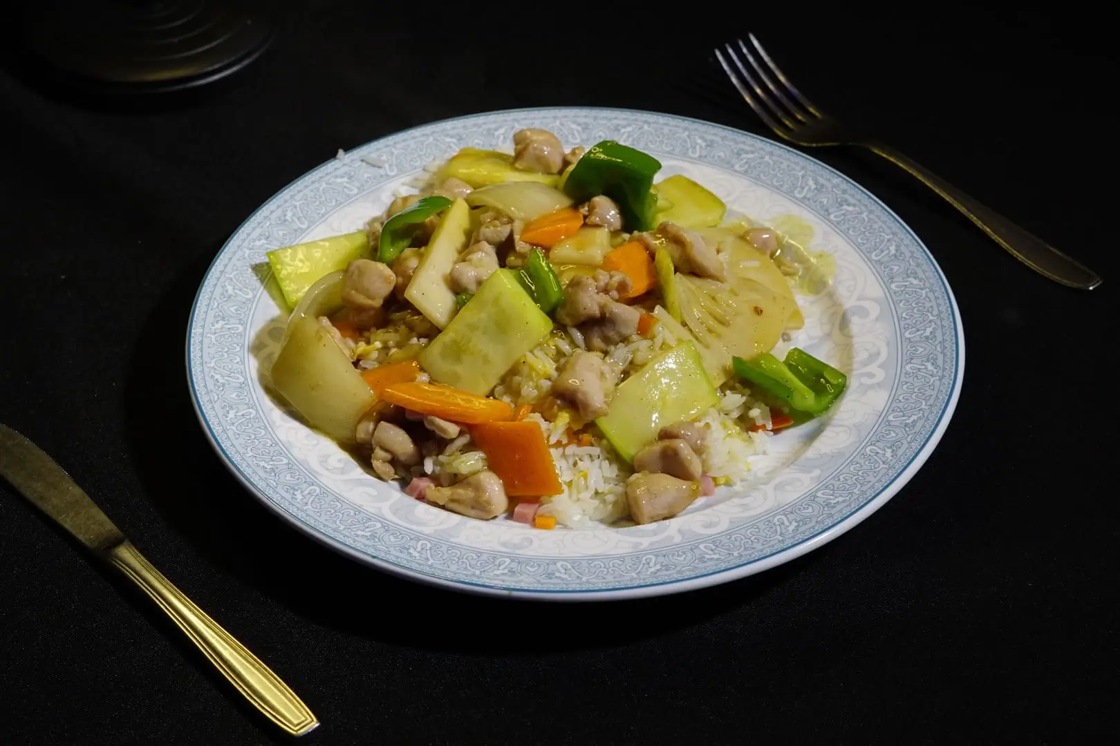 Arroz frito con pollo y curry