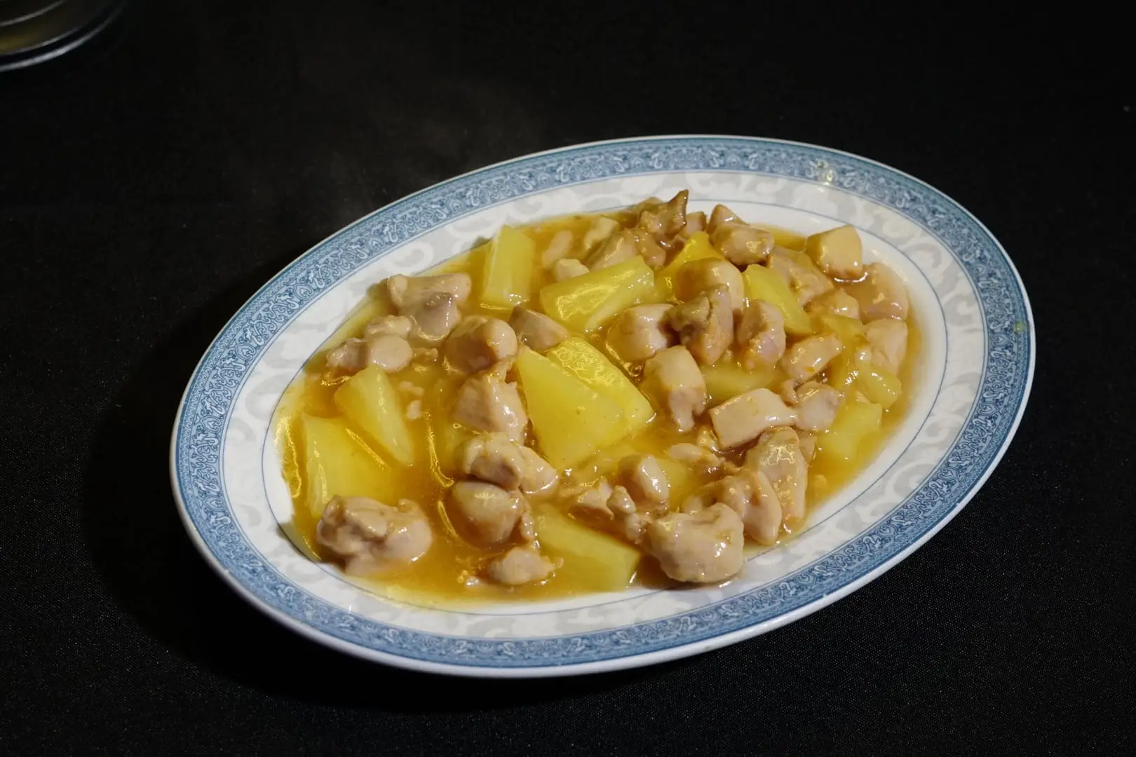 Pollo salteado con piña natural, con un toque dulce y fresco.